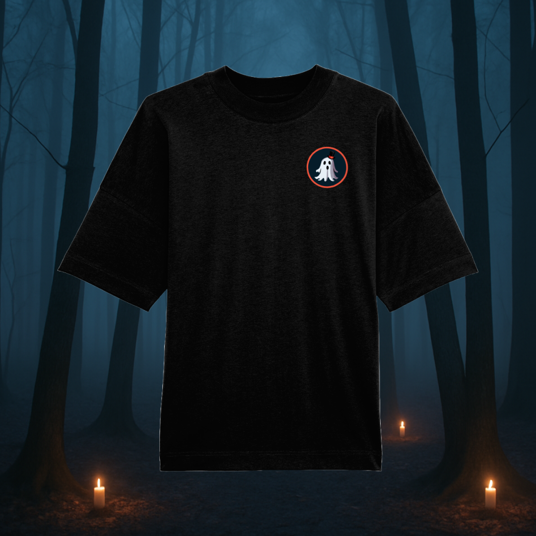 Meet the Ghostly High Guard – the oversized high-neck tee built for those who like their style bold and their nights a little… unpredictable.